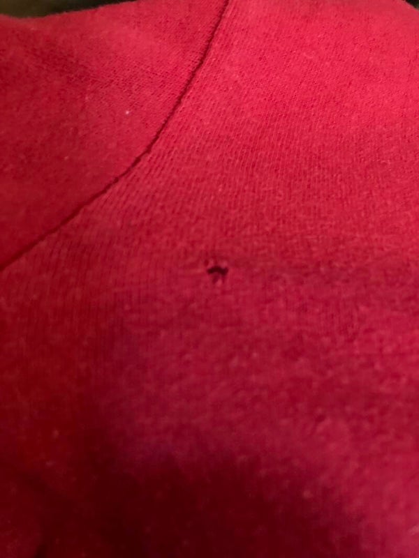 Good condition with some wear and a tiny hole by right armpit.
