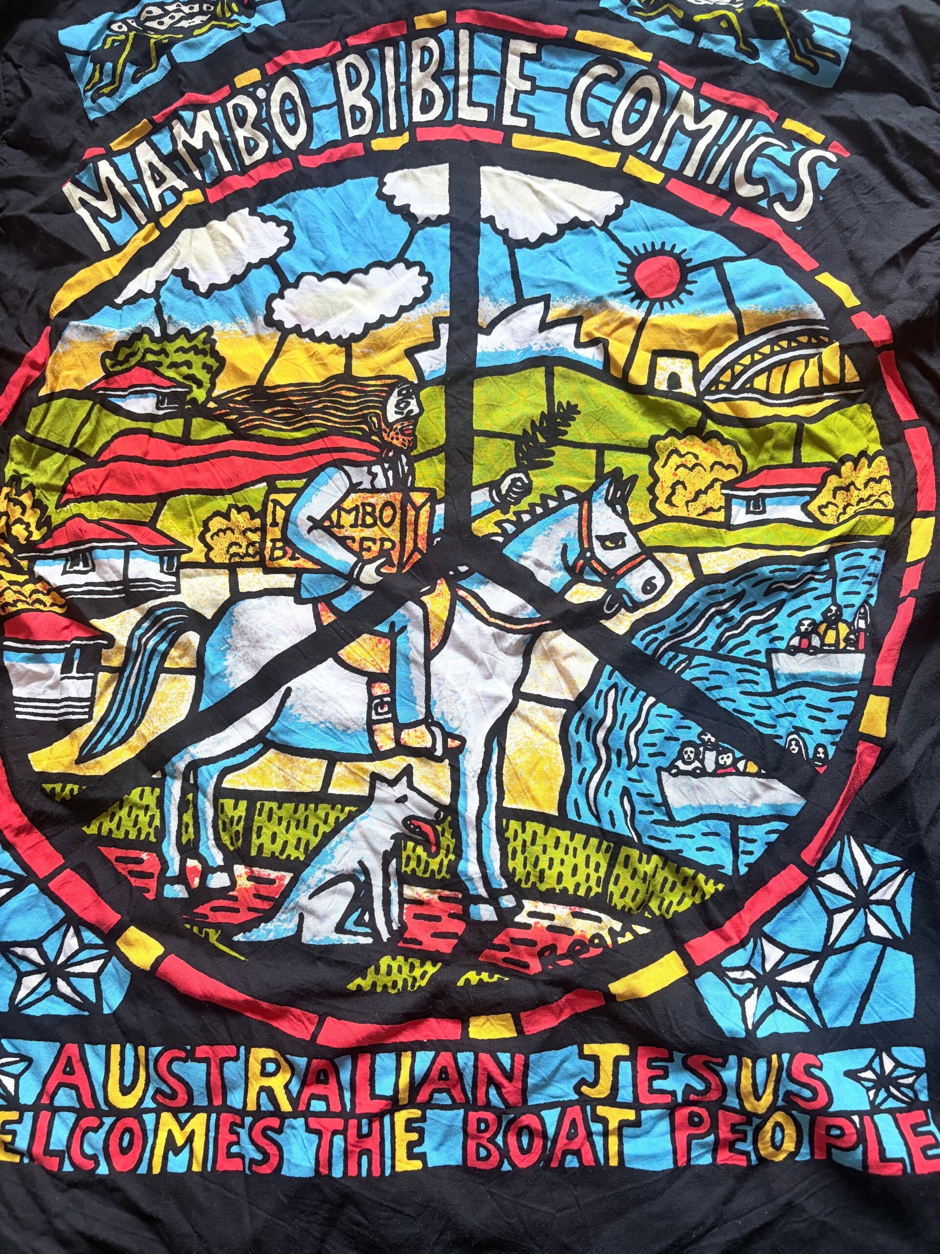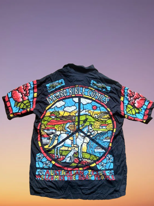 Vintage Mambo Loudshirts 'Bible Comics' Shirt Size L.