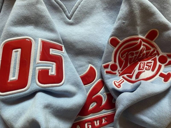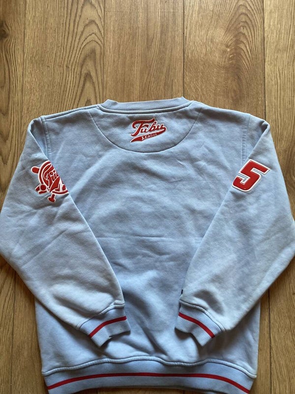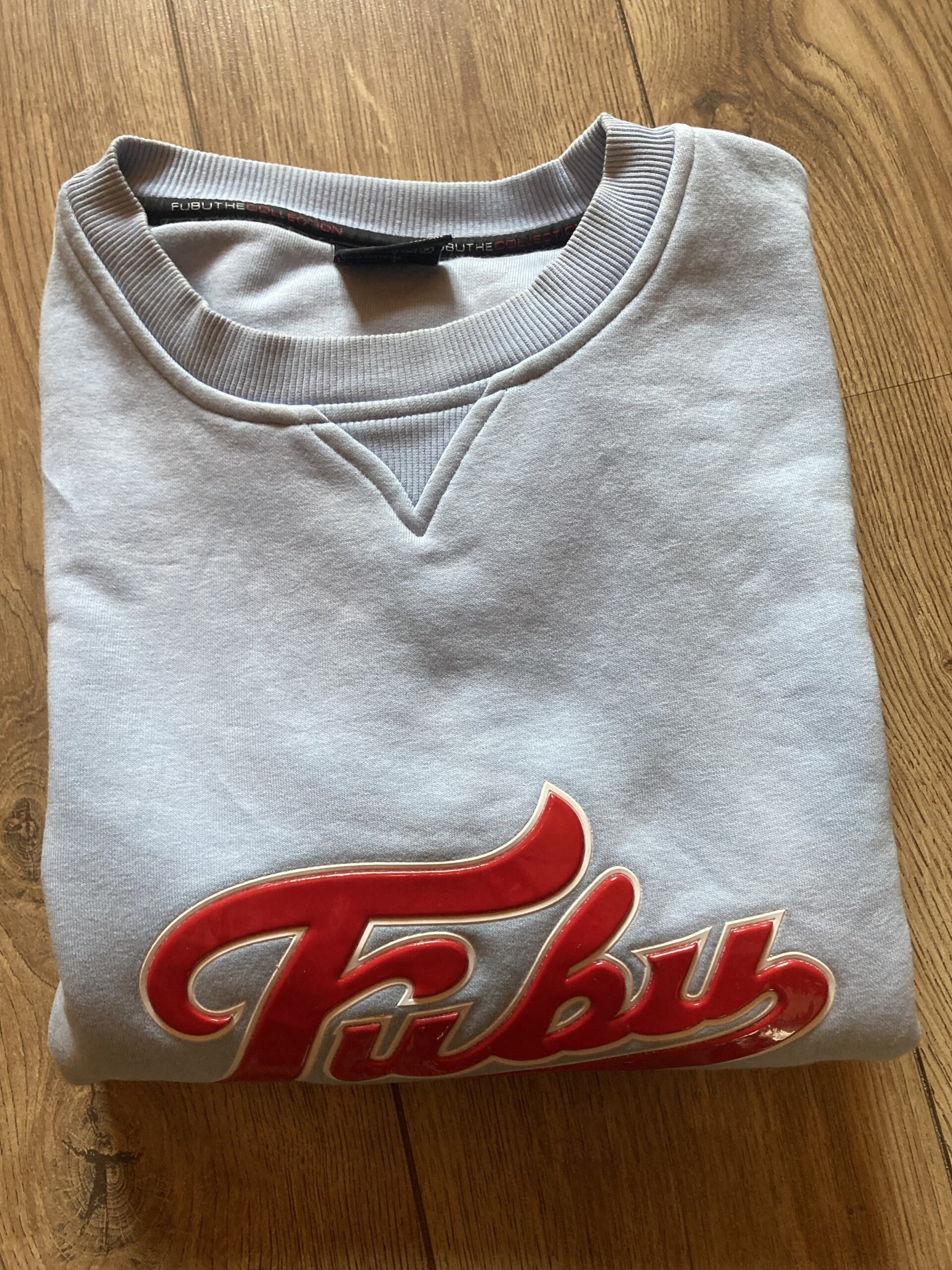 Great light blue FUBU sweatshirtin size 14Y/162cm but fits best between Medium and Large.