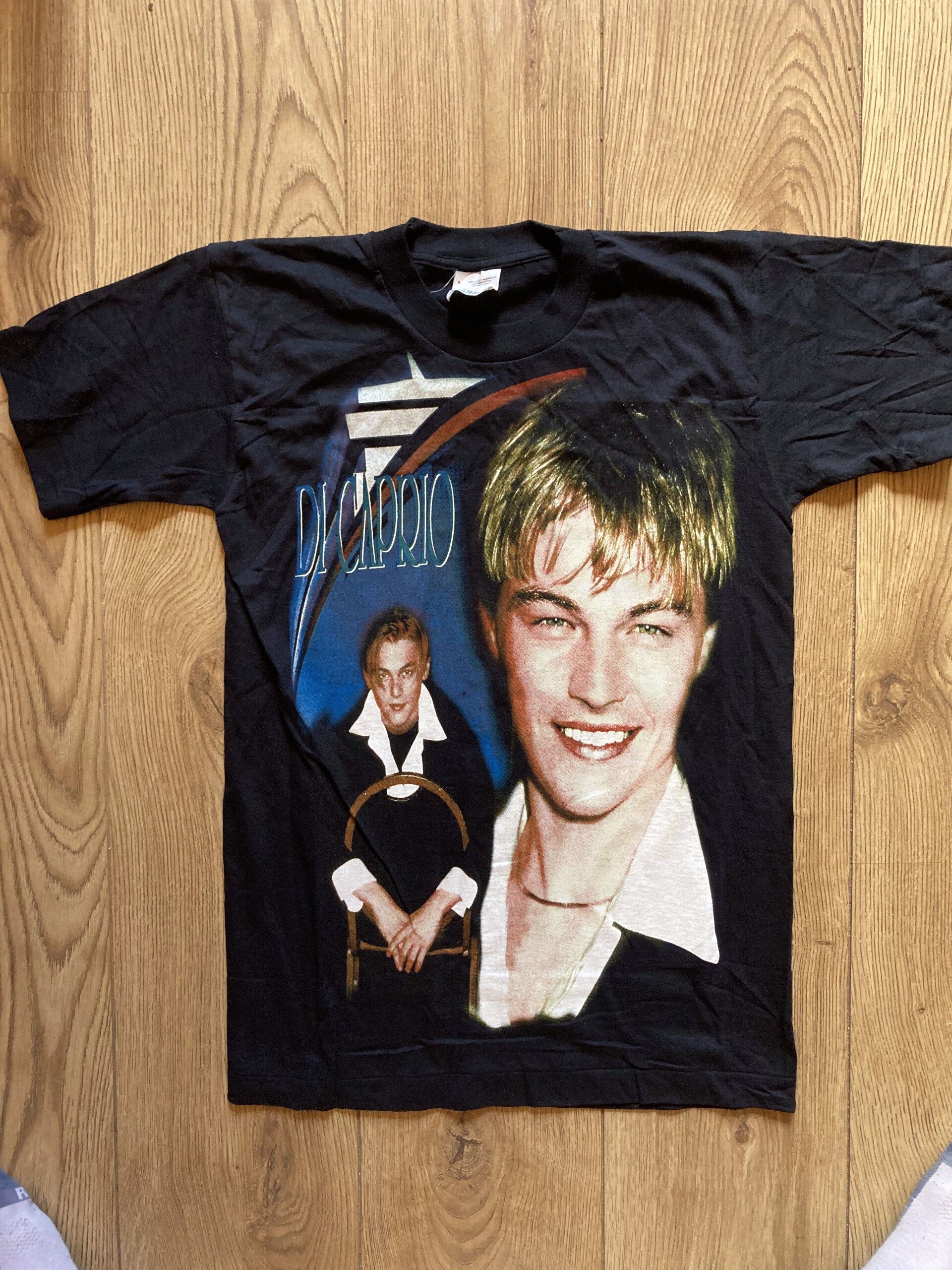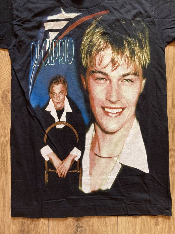 90's black Leonardo DiCaprio 'Screen Stars' t-shirt in size S.