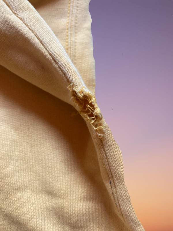 Wrists are damaged , hole left armpit , marks all over and fading on the print.